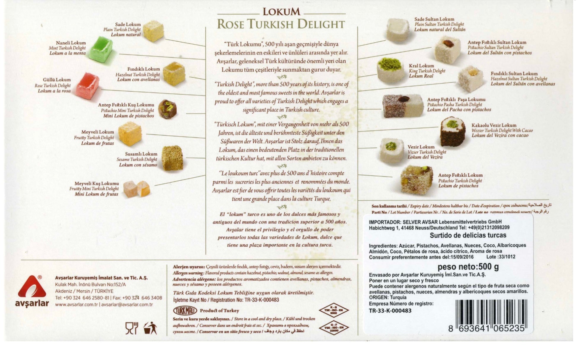 Turkish assorted delights in rose, pistachio, fruits, hazelnut, mint, sesame etc. It’s vegan.